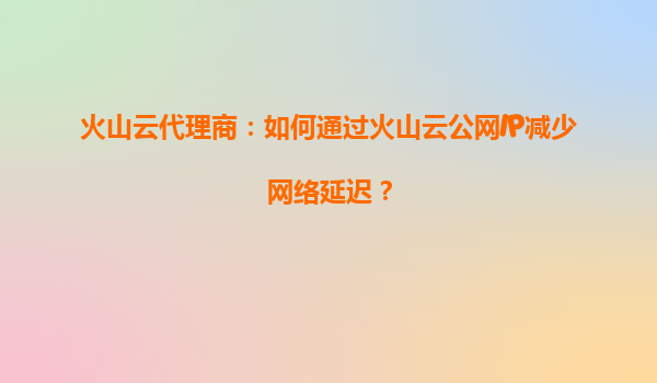 2025-09-16火山云代理商:如何通过火山云公网IP减少网络延迟? 一、火山引擎的核心优势与网络延迟挑战 火山引擎作为字节跳动旗下的云服务平台,依托其全球分布式基础设施和智能调度...