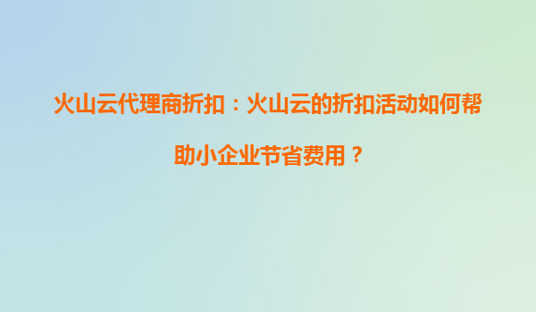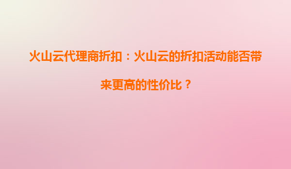 2025-09-16火山云代理商折扣:火山云的折扣活动能否带来更高的性价比? 一、引言:数字化转型浪潮下的云计算需求 在数字化快速发展的今天,企业对云计算的需求呈现爆发式增长。无...