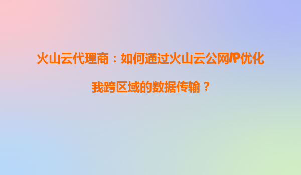 2025-09-16火山云代理商:如何通过火山云公网IP优化跨区域数据传输? 一、跨区域数据传输的挑战 在全球化业务场景中,企业常面临跨地域数据传输的瓶颈,例如延迟高、带宽成本昂贵、稳定性差等问题。尤其对跨境电商、...