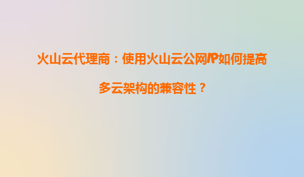 2025-09-16火山云代理商:使用火山云公网IP如何提高多云架构的兼容性? 一、多云架构的挑战与火山云的定位 在多云架构日益普及的今天,企业往往面临跨云资源管理复杂、网络互通成本高、安全性难以保障等问题。不同云服务商...