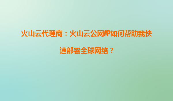 2025-09-16火山云代理商:火山云公网IP如何帮助我快速部署全球网络? 一、引言:全球化网络部署的核心挑战 在数字化时代,企业业务的全球化扩张离不开高效、稳定的网络基...