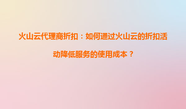2025-09-16火山云代理商折扣:如何通过火山云的折扣活动降低服务的使用成本? 火山云作为字节跳动旗下的云计算服务平台,凭借其强大的技术支持和丰富的产品线,为用户提供了高效、稳定的云服务。对于企业和开发者而言,如何通...