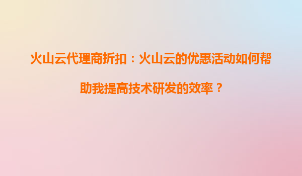2025-09-16火山云代理商折扣:如何通过优惠活动提升技术研发效率 一、引言:技术研发的挑战与云服务的价值 在数字化时代,技术研发的效率直接影响企业的创新能力和市场竞争力。然而,传统自建基础设施的高成...
