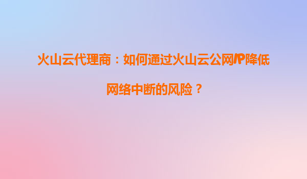 2025-09-16火山云代理商:如何通过火山云公网IP降低网络中断的风险? 在当前数字经济快速发展的背景下,企业对于网络的稳定性和安全性要求越来越高。无论是线上业务还是数据传输,网络中断都可能造成巨大的经济损失和用户...