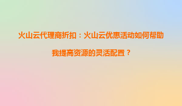 2025-09-16火山云代理商折扣:火山云优惠活动如何帮助我提高资源的灵活配置? 引言 在数字化转型的浪潮中,企业对云计算的需求日益增长。如何高效、灵活地配置资源,成为企业降低成本、提升效率的关键。火山云作为领先的云...