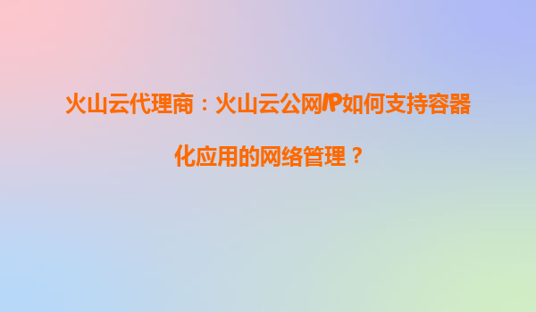 2025-09-16火山云代理商解析:火山云公网IP如何支持容器化应用的网络管理? 一、容器化应用的网络挑战 随着云原生技术的普及,容器化应用已成为企业数字化转型的核心载体。然而,Kubernetes等容器编排平...