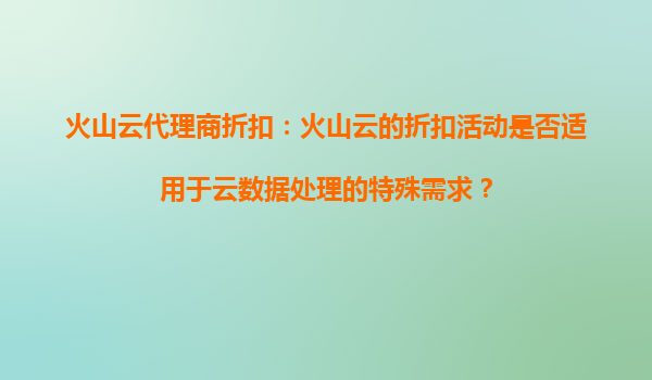 2025-09-16火山云代理商折扣:如何助力企业云数据处理特殊需求 一、火山云代理商折扣活动概述 随着云计算服务的普及,企业愈发关注成本优化与资源效率。火山云作为国内领先的云服...