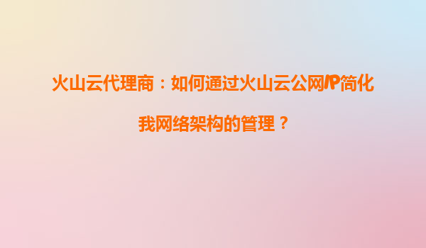 火山云代理商:如何通过火山云公网IP简化网络架构的管理 引言 在当今数字化时代,企业对网络架构的需求日益复杂。无论是电商平台的流量高峰,还是跨国企业的数据传输,都需要高效、稳定的网络支持。传统的网络架构...