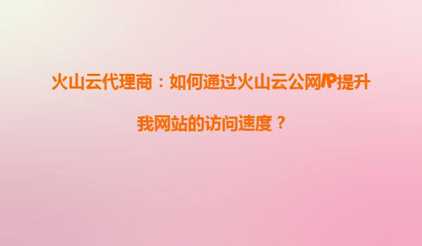 2025-09-16如何通过火山云公网IP加速您的网站访问? 火山云公网IP的核心价值 火山引擎提供的公网IP服务基于全球优质网络基础设施,具备高带宽、低延迟和稳定可靠的特点。通过将公网IP与您的...