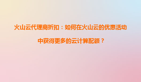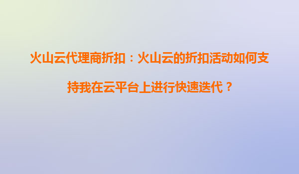 2025-09-16火山云代理商折扣:如何通过折扣活动助力云平台快速迭代 一、火山云折扣活动的核心价值 火山云作为领先的云计算服务提供商,其代理商折扣活动通过降低企业上云...