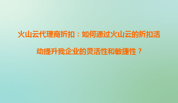 引言:数字化时代的企业敏捷性需求 在快速变化的商业环境中,企业需要灵活应对市场需求和技术迭代。火山云作为领先的云计算服务提供商,通过丰富的代理商折扣活动和技术优势,能够显著提升企业的资源调度效...