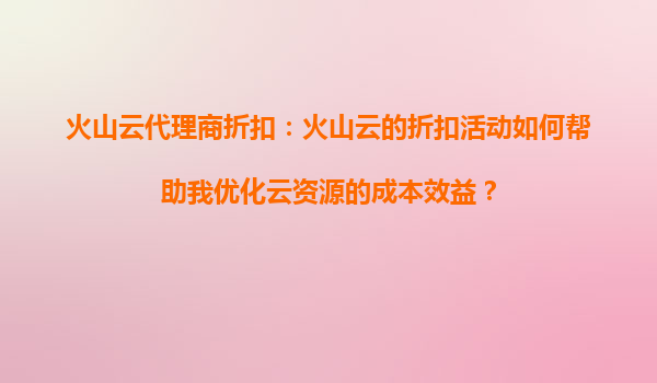 2025-09-16火山云代理商折扣:如何通过折扣活动优化云资源成本效益? 引言 在数字化转型的浪潮中,云计算已成为企业IT基础设施的核心。然而,随着业务规模的扩大,云资源的成本管理成为许多企业的挑战。火山云(Vol...