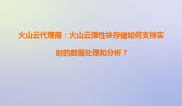 2025-09-16火山云弹性块存储:为实时数据处理与分析赋能 引言:实时数据处理的时代需求 在数字化转型浪潮中,企业对实时数据处理与分析的需求呈爆炸式增长。无论是金融交...