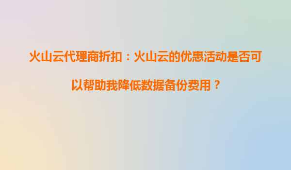 2025-09-16火山云代理商折扣:如何利用优惠活动降低数据备份费用? 一、数据备份的成本挑战 随着企业数据量的爆发式增长,数据备份已成为IT支出的重要组成部分。传统的自建存储方案需要高昂的硬件...