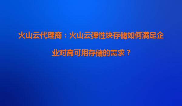 2025-09-16火山云代理商:火山云弹性块存储如何满足企业对高可用存储的需求 一、企业高可用存储的核心诉求 在数字化时代,企业对数据存储的要求越来越高,尤其是对高可用性的需求日益突出。高可用存储系统需要具备以下关...