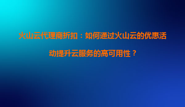 2025-09-16火山云代理商折扣:如何通过火山云的优惠活动提升云服务的高可用性? 一、引言 在当今数字化时代,企业对云服务的高可用性需求日益增长。稳定的访问速度、强大的计算能力和灵活的扩展性是业务连续性的...