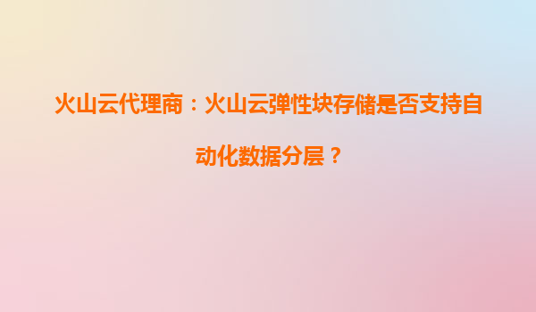 2025-09-16火山云代理商:火山云弹性块存储是否支持自动化数据分层? 引言 随着企业数据量的快速增长,如何高效存储和管理数据成为企业IT架构设计中的重要课题。自动化数据分层作为一种智能化的存储管理技术,能...