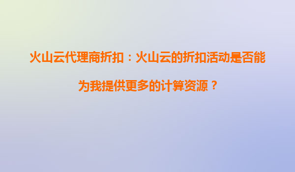 2025-09-16火山云代理商折扣:如何利用折扣活动获取更多计算资源? 一、火山云的核心优势 火山云作为国内领先的云服务提供商,凭借其高性能基础设施和灵活的资源配置,已...