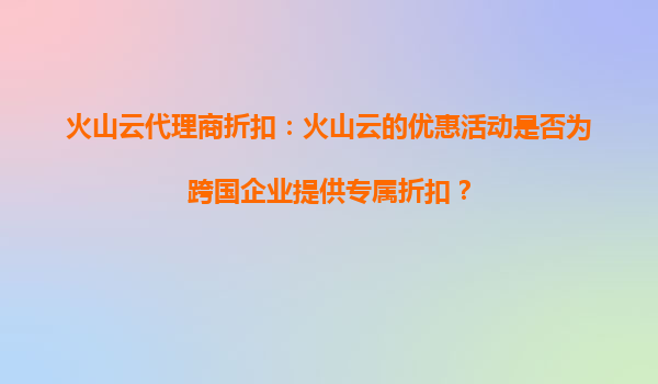 火山云代理商折扣:如何通过优惠活动加速应用上线? 一、标题拆解与需求分析 “火山云代理商折扣”这一关键词表明用户关注成本优化,而“加速应用程序上线速度”则是核心目标。两者结合反映了企...