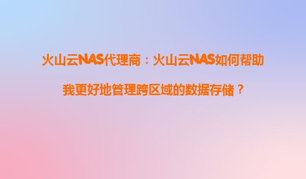 火山云NAS代理商:火山云NAS如何帮助您更好地管理跨区域的数据存储? 在数字化时代,数据已成为企业运营的核心资产。随着业务规模的扩大和全球化的发展,跨区域数据存储和管理变得尤为重要。传统的数据存储方式...