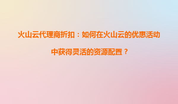 2025-09-16火山云代理商折扣:如何在火山云的优惠活动中获得灵活的资源配置? 一、火山云的核心优势 火山云作为字节跳动旗下的云计算服务平台,凭借其强大的技术实力和全球化资源布局,为用户提供高性能、高...