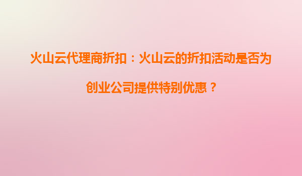 2025-09-06火山云代理商折扣:创业公司如何享受专属优惠? 一、火山云为创业公司提供哪些特别支持? 火山云作为字节跳动旗下的云计算服务品牌,始终关注创业公司的成长需...