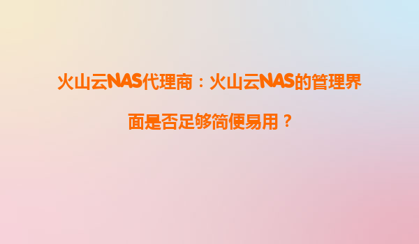 2025-09-06火山云NAS代理商指南:管理界面的简便性与易用性探析 一、直观的界面设计:降低用户学习门槛 火山云NAS的管理界面采用现代化的UI设计理念,布局清晰且功能模块划分明确。首页通过可视化图表展示存储容量、...