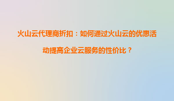 2025-09-06如何通过火山云代理商折扣提升企业云服务性价比 一、火山云的核心优势:技术实力与稳定保障 火山云作为字节跳动旗下的云计算品牌,依托全球领先的分布式架构和智能化运维体系,为用户提供...