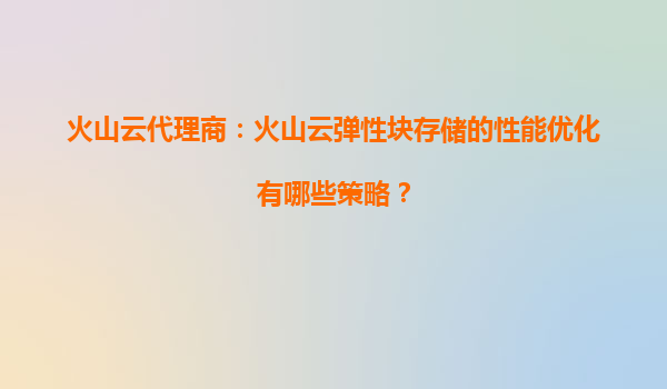 2025-09-16火山云代理商:火山云弹性块存储的性能优化策略与优势解析 一、火山云弹性块存储的核心价值 作为火山引擎(VolcanoEngine)的核心产品之一,火山云弹性块存储(EBS)为云服务器提供高性能、...