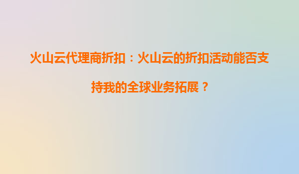 2025-09-16火山云代理商折扣:火山云的折扣活动能否支持我的全球业务拓展? 1.火山云的全球化资源优势 火山云作为字节跳动旗下的云计算品牌,依托其母公司强大的技术背景和全球化布局,已在多个国家和地区建立了...