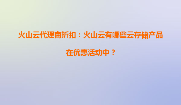 2025-09-02火山云代理商折扣:火山云存储产品优惠活动全解析 一、火山云存储产品矩阵及当前优惠 作为字节跳动旗下的云计算品牌,火山引擎(VolcanoEngine)提供多款高性价比云存储产品,目前通过代理商...