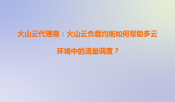2025-09-03火山云负载均衡如何优化多云环境流量调度 在多云架构成为企业数字化转型标配的今天,如何高效管理跨云流量成为关键挑战。火山云负载均衡服务凭借智能调度、全局容灾和协议优化三大核心能力,为企业提供了一套高可用...