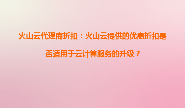 2025-09-03火山云代理商折扣:云计算服务升级的理想选择 火山云代理商折扣的适用范围 火山云作为国内领先的云计算服务提供商,其代理商折扣政策广泛覆盖各类产品线。对于用户关心的云计算服务升级,火山云的代理...