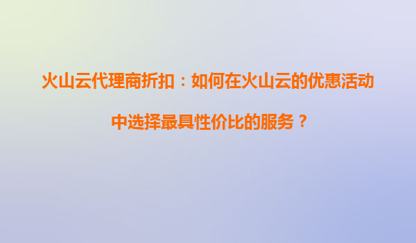 2025-09-03火山云代理商折扣:如何在火山云的优惠活动中选择最具性价比的服务? 一、火山云的核心优势 在众多云服务提供商中,火山云凭借其独特优势成为企业数字化转型的热门选择,以下是其核心竞争力的体现: 全球化...