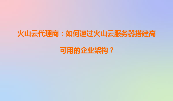 2025-09-02火山云代理商:如何通过火山云服务器搭建高可用的企业架构 引言:企业数字化转型的必然选择 在数字化转型浪潮中,企业IT基础设施的高可用性成为核心竞争力。作为火山引擎官方合作伙伴,火山云代理商凭借其技术赋能...