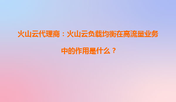 2025-09-02火山云代理商:如何通过火山云负载均衡提高应用的弹性 引言 在当今数字化转型的浪潮中,应用的高可用性和弹性成为了企业IT架构的关键需求。作为专业的火山云代理商,我们深知负载均衡技术对于提升应用弹性的重要性...
