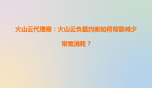 火山云代理商:火山云负载均衡如何帮助减少带宽消耗? 引言 在当今数字化时代,企业对云计算资源的需求日益增长,尤其是需要高性能、高可用性的网络服务。然而,随着业务量的增加,...