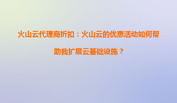 2025-09-02火山云代理商折扣:如何利用优惠活动高效扩展您的云基础设施 一、引言:云基础设施扩展的挑战与机遇 在数字化转型加速的今天,企业对云基础设施的需求呈现爆发式增长。然而,扩展云资源往往伴...