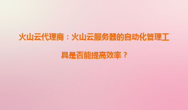 2025-09-02火山云服务器自动化管理工具的核心价值 云计算时代,企业IT运维面临资源分散、管理复杂度高等挑战。火山云推出的代理商自动化管理工具通过智能化运维体系,将部署、监控、扩容等高频操作标准化,据实测可减少70%重...