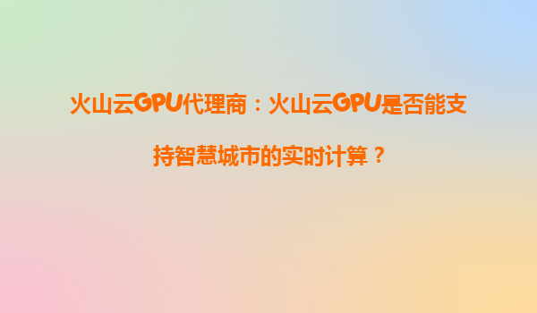2025-08-28火山云GPU代理商:火山云GPU是否能支持智慧城市的实时计算? 一、智慧城市与实时计算的挑战 智慧城市的核心在于通过物联网、大数据和人工智能等技术,实现城市管理的智能化和高效化。其中,实时计...