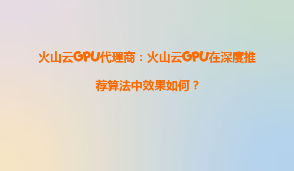 2025-08-28火山云GPU代理商:火山云GPU在深度推荐算法中效果如何? 一、火山云GPU的核心优势 火山云GPU作为火山引擎(VolcanoEngine)提供的云计算服务之一,依托字节跳动的技术生态,在深度推荐算法场景中...