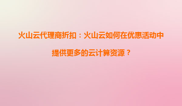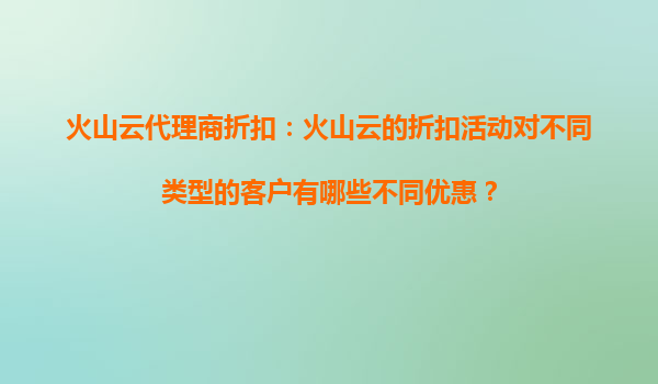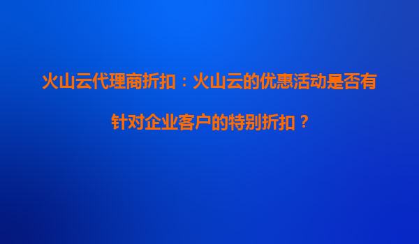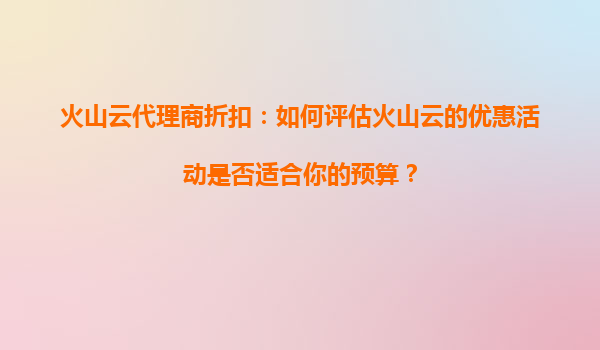 火山云代理商折扣:如何评估火山云的优惠活动是否适合你的预算? 引言 在当今数字化时代,云计算服务已成为企业运营的核心基础设施之一。火山云作为国内领先的...