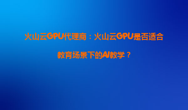 2025-08-27火山云GPU代理商:火山云GPU是否适合教育场景下的AI教学? 引言 随着人工智能技术的快速发展,AI教育逐渐成为高校、职业院校甚至中小学的热门课程。然而,AI教学对计算资源的需求较...