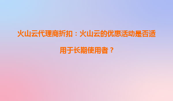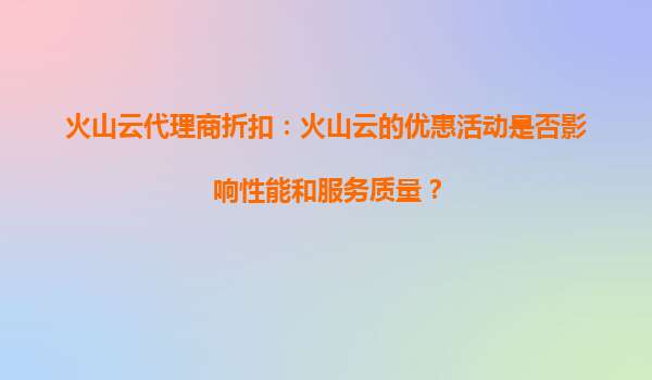 火山云代理商折扣:火山云的优惠活动是否影响性能和服务质量? 引言 在云计算市场竞争日益激烈的今天,各大云服务提供商纷纷推出各种优惠活动来吸引客户。火山...