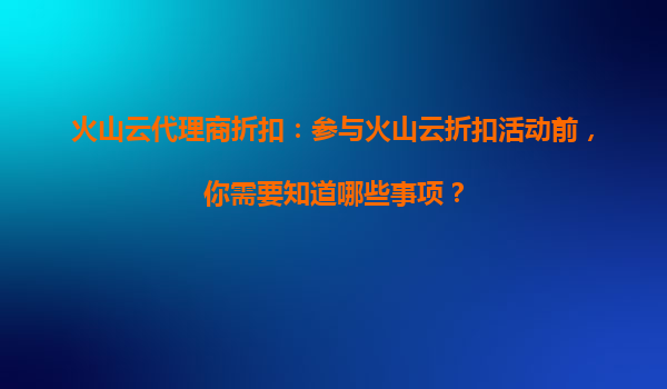 2025-08-27火山云代理商折扣:参与火山云折扣活动前,你需要知道哪些事项? 随着云计算技术的快速发展,越来越多的企业和个人开始选择云服务来提升业务效率和降低成本。火山云作为国内领先的云计算服务提供商,凭借其强大...
