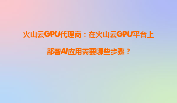 2025-08-27火山云GPU代理商指南:在火山云GPU平台上部署AI应用的完整步骤 一、火山云GPU平台的核心优势 在开始部署AI应用之前,了解火山引擎的核心优势能帮助您更高效地利用平台资...