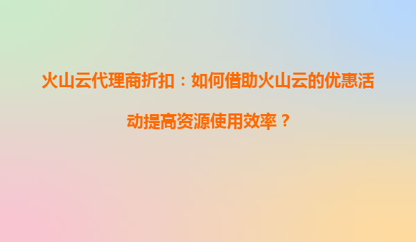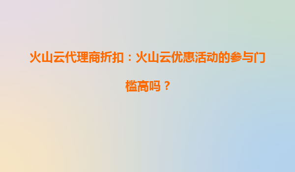 2025-08-27火山云代理商折扣:精准覆盖多类用户群体的优质选择 一、火山云代理商折扣活动概览 火山云作为领先的云计算服务提供商,近期推出的代理商折扣活动旨在通过优惠...