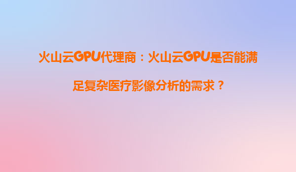 2025-08-27火山云GPU代理商:火山云GPU能否满足复杂医疗影像分析的需求? 一、医疗影像分析的挑战与GPU的重要性 随着人工智能技术在医疗领域的深入应用,医疗影像分析已成为辅助诊...