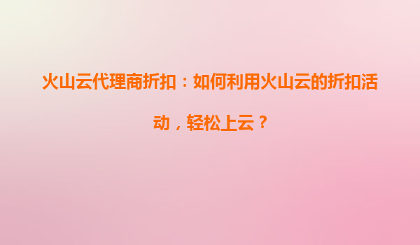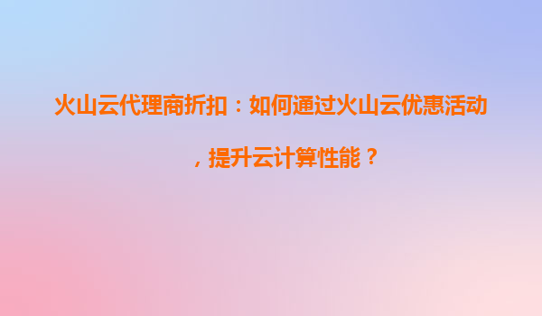火山云代理商折扣:如何通过火山云优惠活动,提升云计算性能? 引言 在当今数字化时代,云计算已成为企业提升效率、降低成本的核心技术之一。火山云作为国内领先的云计算服务提供商,凭借其高性能、稳定性...