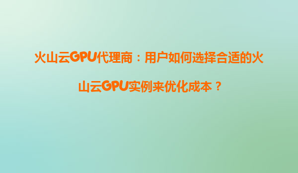 2025-08-26火山云GPU代理商:用户如何选择合适的火山云GPU实例来优化成本? 引言 随着人工智能、深度学习和大规模数据处理的快速发展,GPU计算资源的需求急剧增加。火山云...